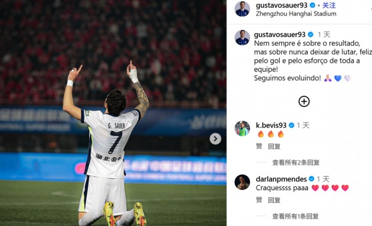 3月24日讯 正在武汉三镇客场1-1战平河南队后,此役破门的三镇外援绍尔更新了社媒。